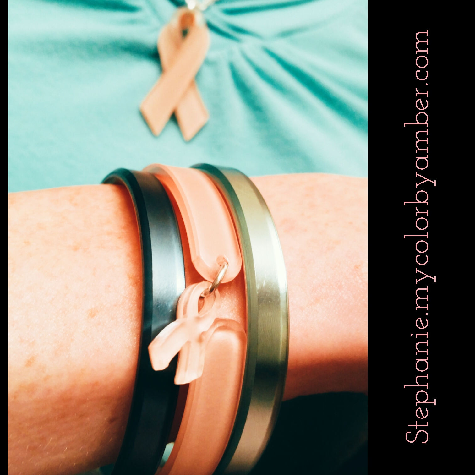 #october is #BreastCancer #awareness #month @ColorbyAmber has created this beautiful #necklace and #skinny to raise funds for the #huntsmancancerinstitute $4 from every #cbahopenecklace and $3 #cbafighterbracelet go towards Breast cancer research!! For each #Hope & #Fight set sold I will donate my commission to the #canadiancancersociety because #cancer affects #allofus