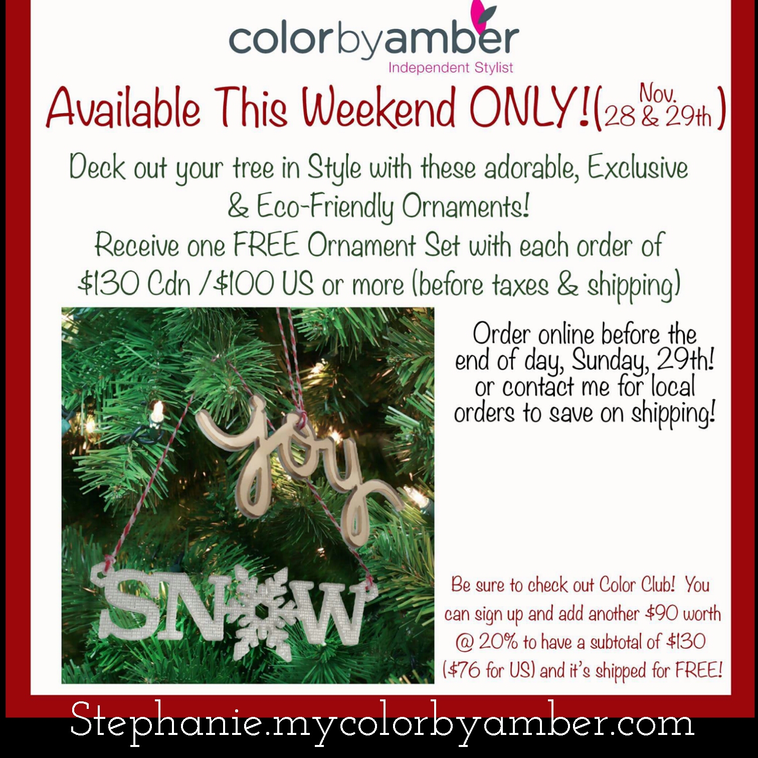 Check out the #smallbusiness #Weekend #sale. Any order over $130 before tax and shipping earns you these beautiful ornaments!! Consider ordering the #Exclusive #Colorclub and #shopping everything else at 20% off. Plus it will ship to you for free!